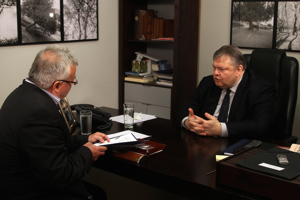 Συνέντευξη του Προέδρου του ΠΑΣΟΚ, Ευ. Βενιζέλου, στο ΑΠΕ- ΜΠΕ και στον Πρόεδρο - Γενικό Διευθυντή του ΑΠΕ- ΜΠΕ, Μιχάλη Ψύλο.