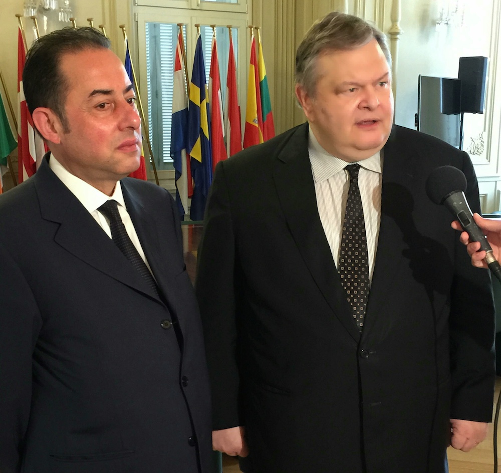και Ευάγγελου Βενιζέλου, Προέδρου του ΠΑΣΟΚ, μετά τη συνάντησή τους στα γραφεία του ΕΚ στην Αθήνα