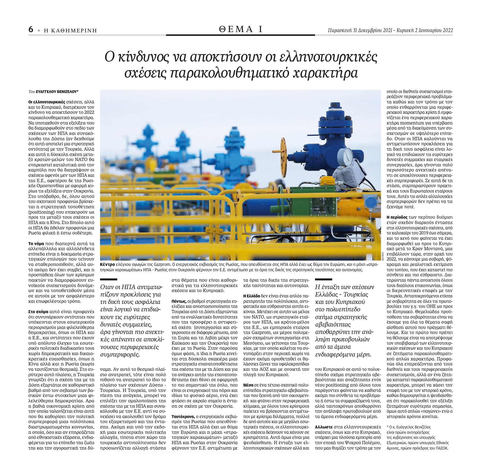 Άρθρο Ευάγγελου Βενιζέλου στην Καθημερινή της Κυριακής (31.12.2021-2.1.2022)