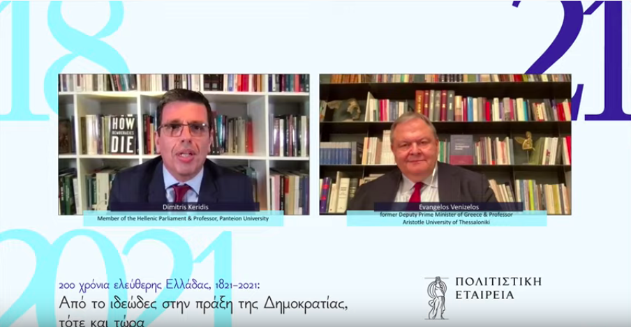 Ομιλία Ευάγγελου Βενιζέλου στην εκδήλωση της Πολιτιστικής Εταιρείας «200 χρόνια ελεύθερης Ελλάδας, 1821-2021: Από το ιδεώδες στην πράξη της Δημοκρατίας, τότε και τώρα»