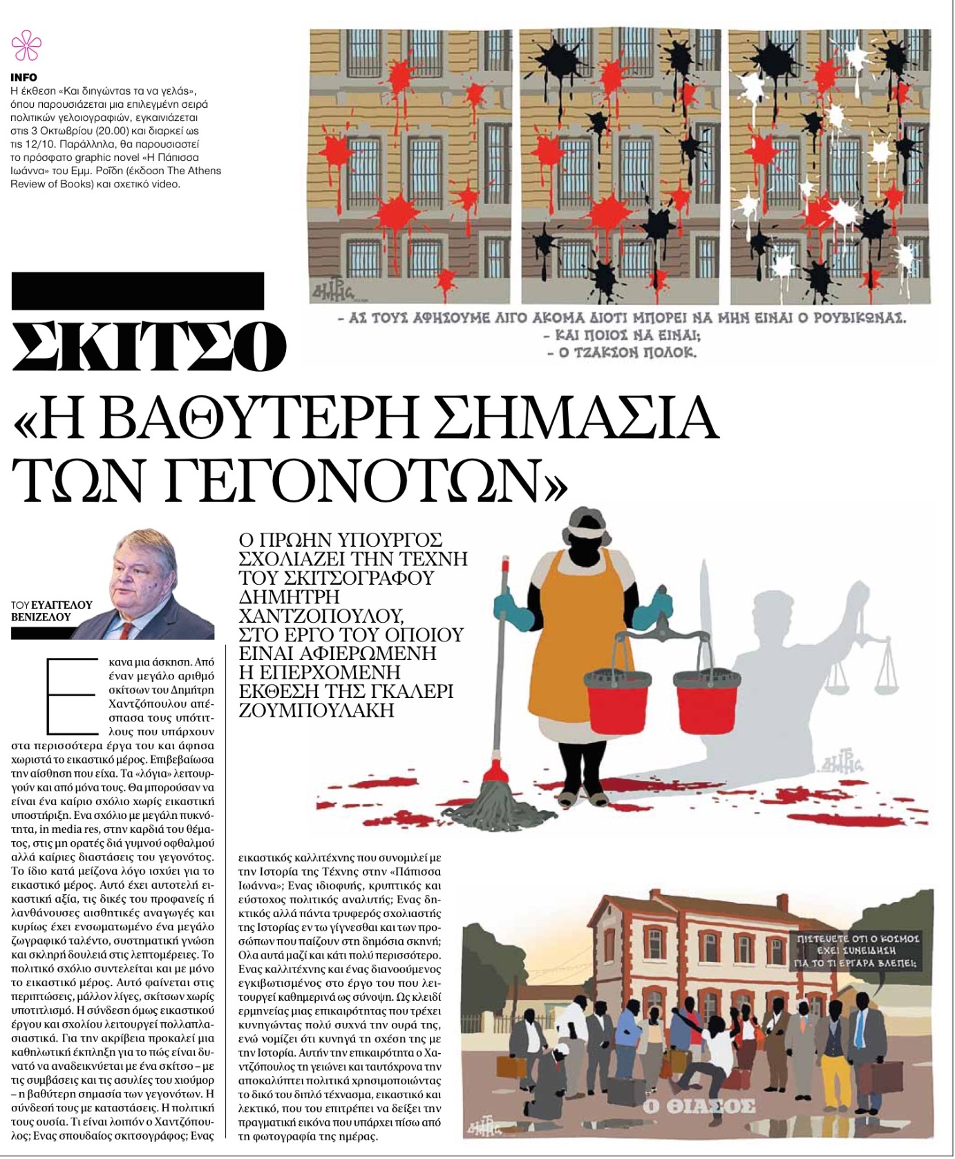 Άρθρο Ευάγγελου Βενιζέλου, στα ΝΕΑ Σαββατοκύριακο, για τον Δημήτρη Χαντζόπουλο, στο έργο του οποίου είναι αφιερωμένη η επερχόμενη έκθεση της γκαλερί Ζουμπουλάκη «Και διηγώντας τα να γελάς»