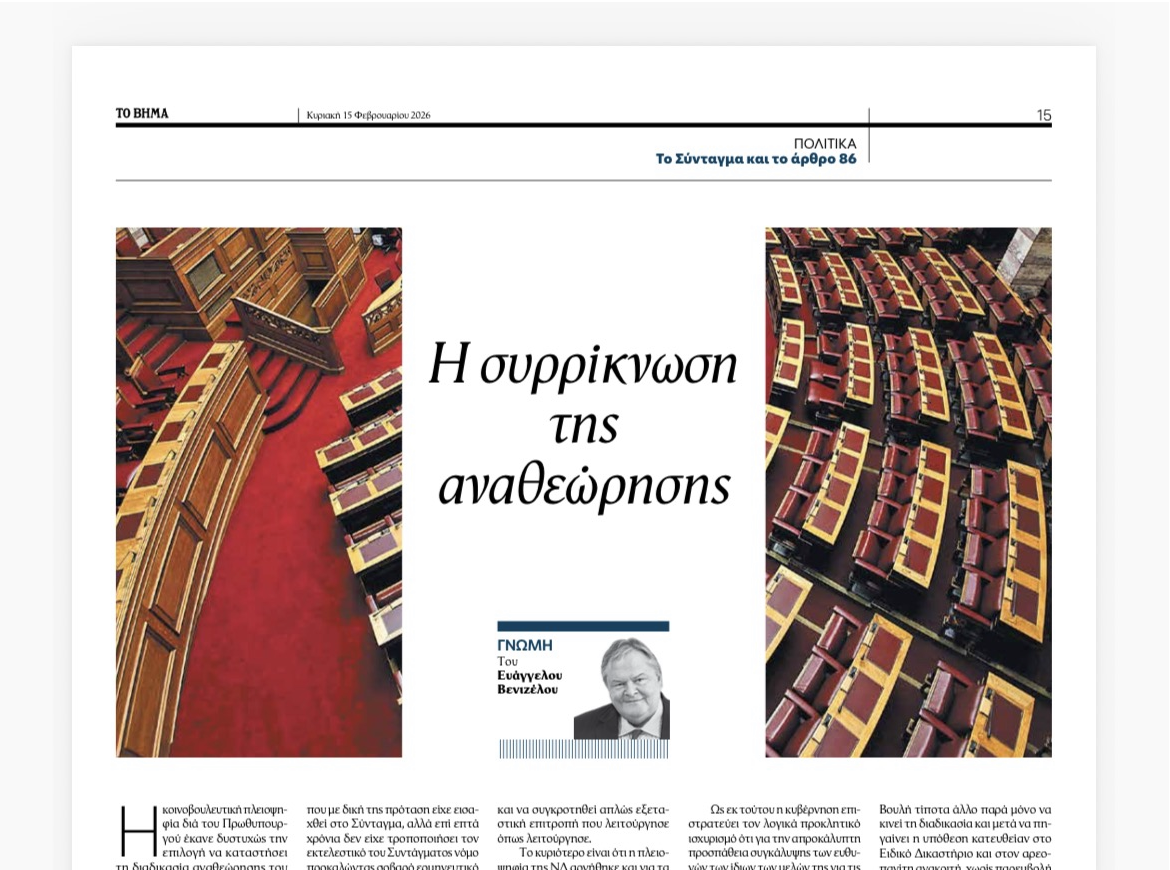 Άρθρο Ευάγγελου Βενιζέλου για το Βήμα της Κυριακής *