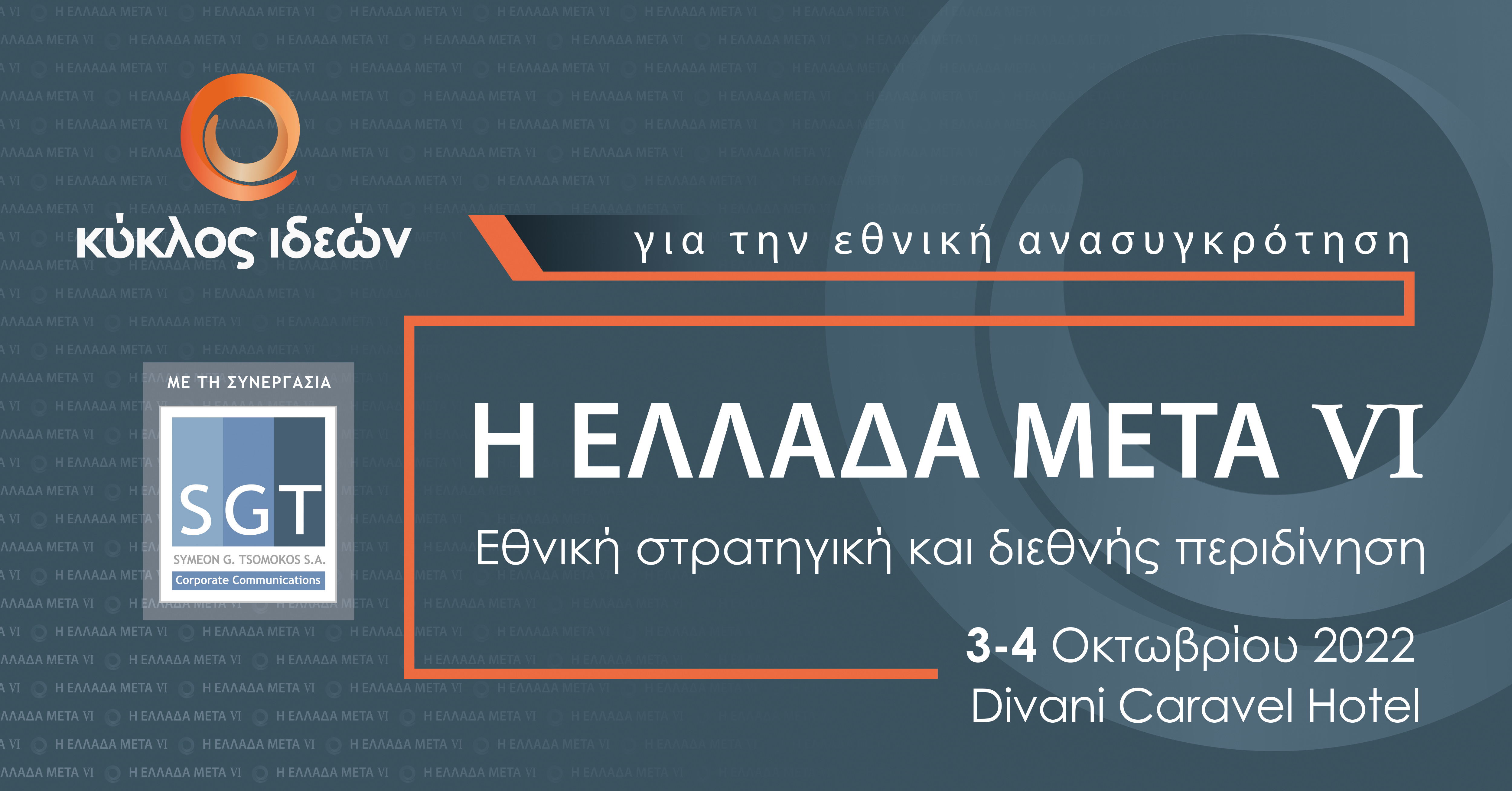 O ΚΥΚΛΟΣ ΙΔΕΩΝ σε συνεργασία με τη TSOMOKOS, διοργανώνουν για έκτη συνεχή χρονιά το ετήσιο συνέδριο Η ΕΛΛΑΔΑ ΜΕΤΑ, στις 3-4 Οκτωβρίου 2022, με κεντρικό θέμα: Εθνική στρατηγική και διεθνής περιδίνηση