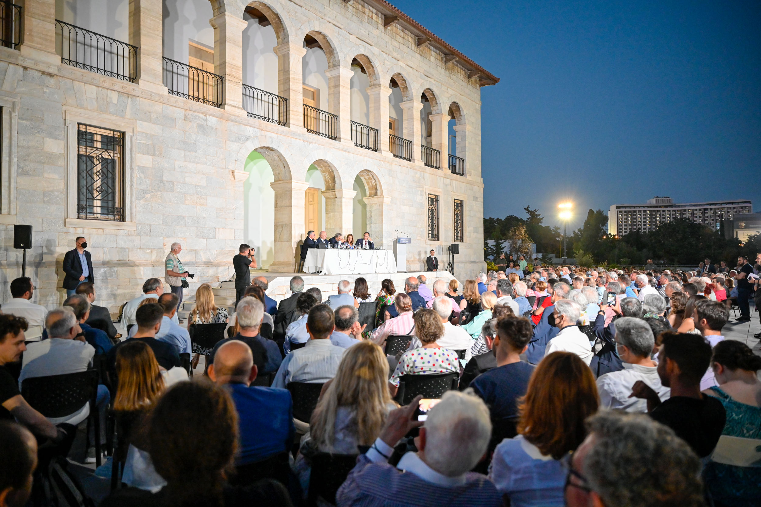 Θέλω να μου επιτρέψετε να μνημονεύσω για λόγους όχι μόνο θεσμικούς, αλλά αυθεντικά προσωπικούς, τον πρώην πρωθυπουργό Αντώνη Σαμαρά με τον οποίο πορευθήκαμε μαζί και έχουμε συγκροτήσει μαζί μία έννοια που είναι οι Σαμαρο - Βενιζέλοι, η οποία νομίζω ότι αποτελεί και ένα ιστορικό στοίχημα για το πώς τελικά θα καταγραφεί, θέλω να ελπίζω θετικά. Θα μιλήσω για τον Αντώνη, ο Αντώνης είναι εδώ, μέχρι τελευταία στιγμή περιμέναμε το Λουκά Παπαδήμο, κάτι του έτυχε, αλλά και ο Γιώργος Παπανδρέου με ευχαρίστησε για την πρόσκληση, για λόγους οικογενειακών υποχρεώσεων δεν είναι σήμερα μαζί μας.